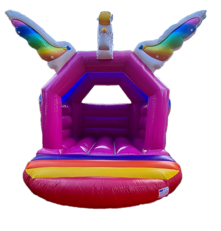 This unique pink Unicorn themed Bouncy Castle is an absolute must at any little girls or unicorn lovers Birthday Party. Unicorns have become very popular in the last few years and they are definitely here to stay. This Unicorn Bouncy Castle is a stunning vibrant colourful unit with an amazing Unicorn that pops out from the top and will be sure to have all of your guests impressed and entertained.