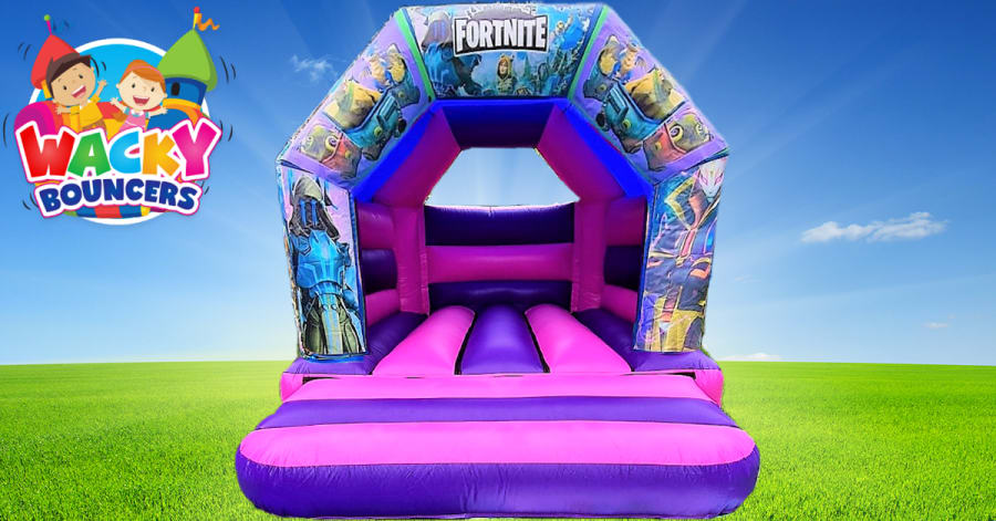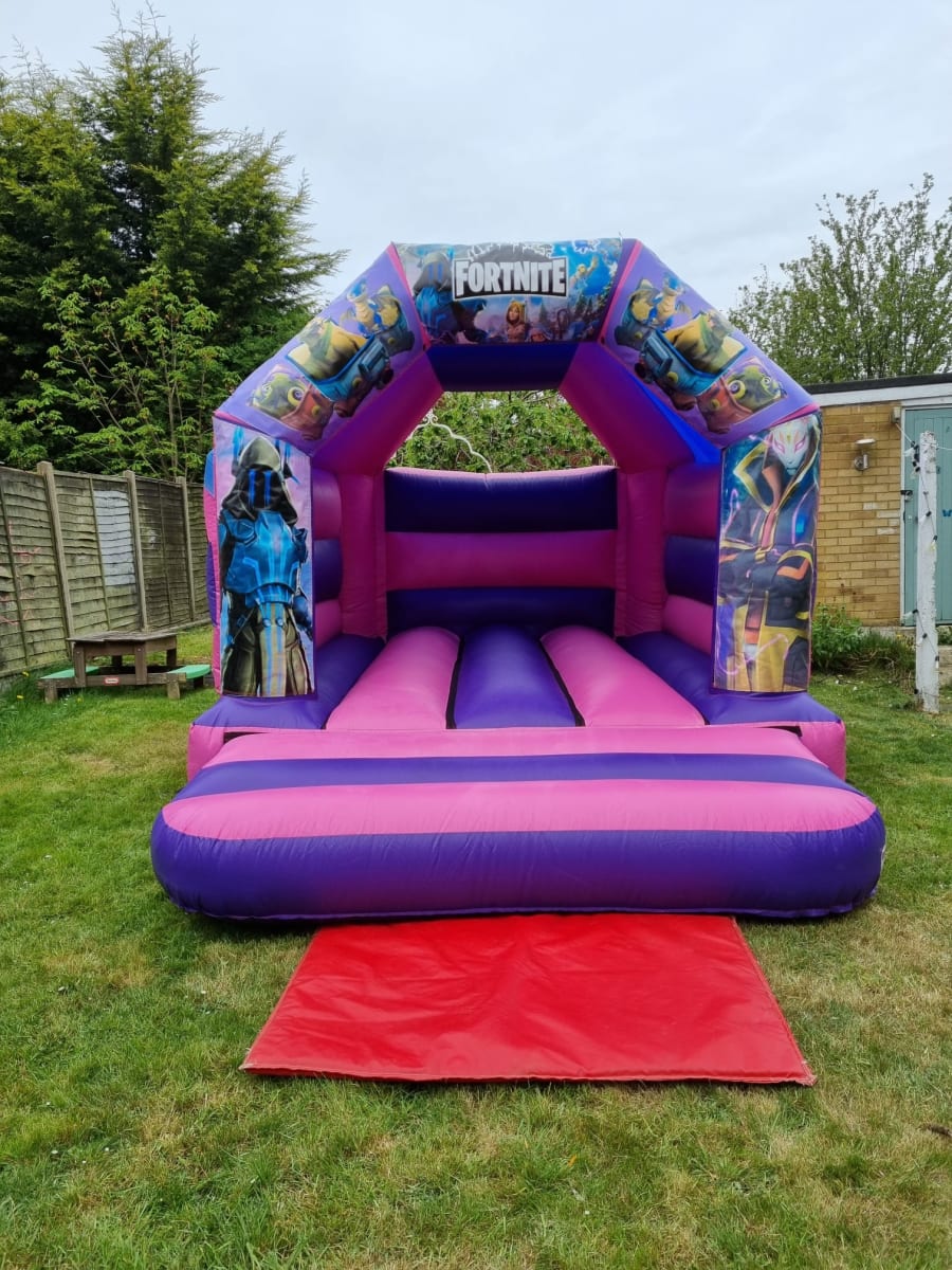 Pink and Purple Fortnite Themed Bouncy Castle