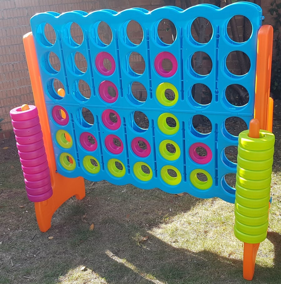From Hasbro. The board measures 1.1m x 1.1m. A classic educational game of strategy where you have to connect 4 counters in a row to win. Perfect for parties. Popular at any event/celebration. A great add on when hired with other products ie Bouncy castle etc.