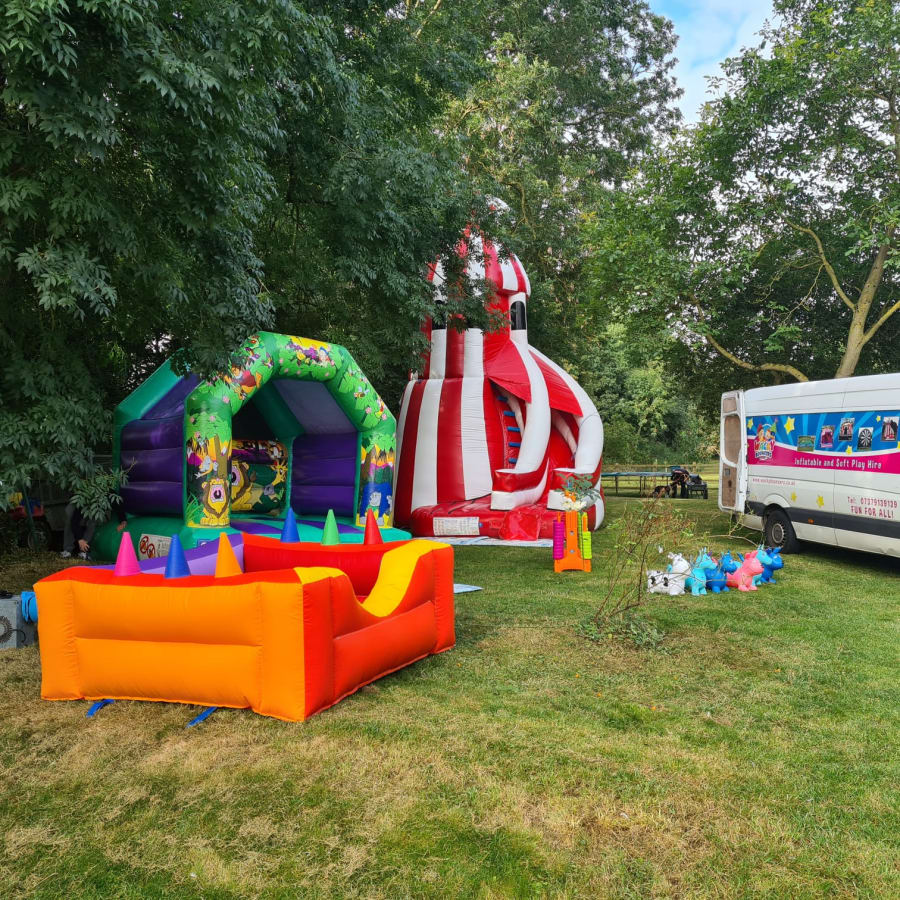 • Bookings will be cancelled if grounds are wet or waterlogged from rain prior to booking date. We will be observing weather conditions prior to the booking date and will in no circumstance erect an inflatable on these ground types. If grounds are waterlogged or wet when driver arrives, they will not set up the equipment.