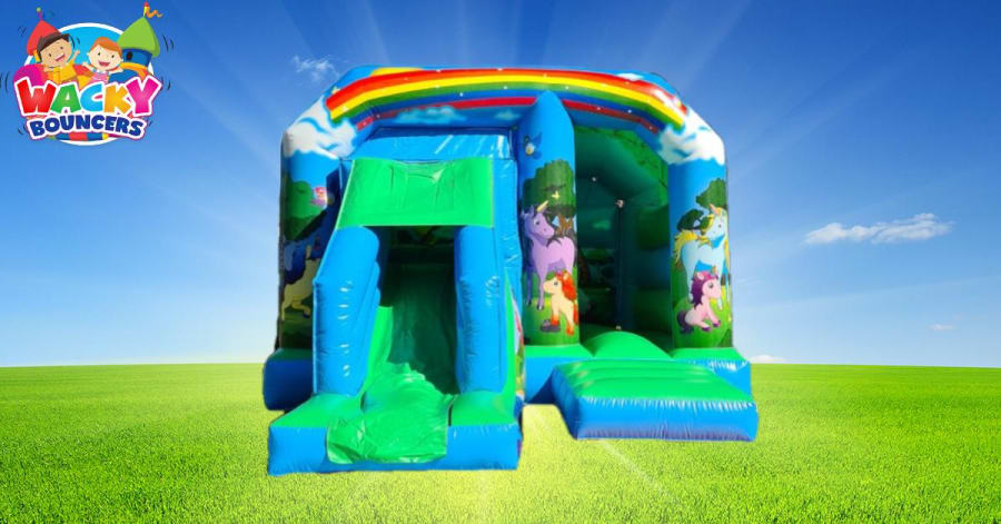 Its all Sunshine and Rainbows! Unicorns are more popular then ever and most little girls just absolutely love them. You can Bounce, Jump and Slide while listening to your favourite music in this amazing Bouncy Castle. This Unicorn Bouncy Castle Is just perfect for unicorn lovers and great for princess theme parties too. The Bouncy Castle has bright pretty colours and graphics. It comes with a fitted shower cover and can turn into a disco for an additional £25.00*. Please advise when booking on our site in the 'additional notes' section. Please click on the link to see this Bouncy Castle with disco lights Disco Unicorn Bouncy Castle