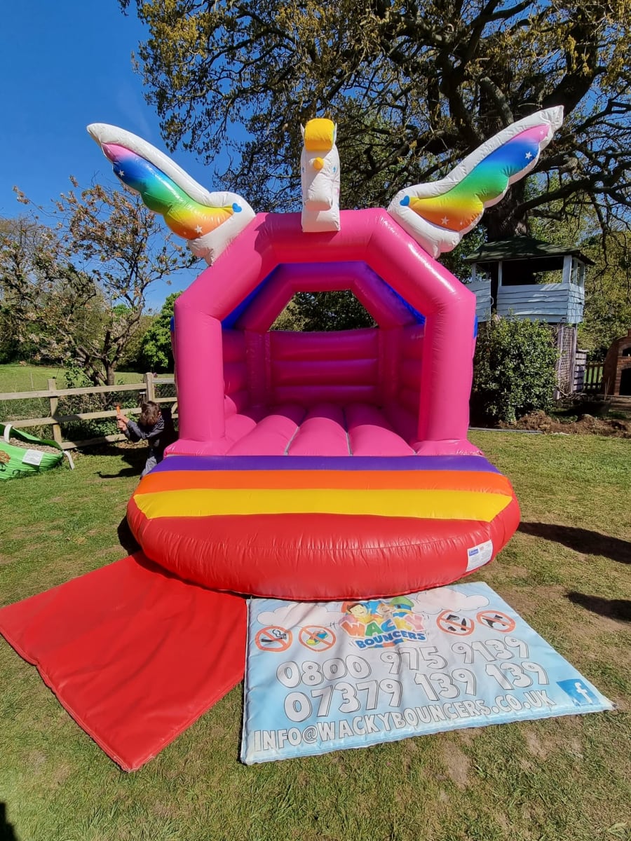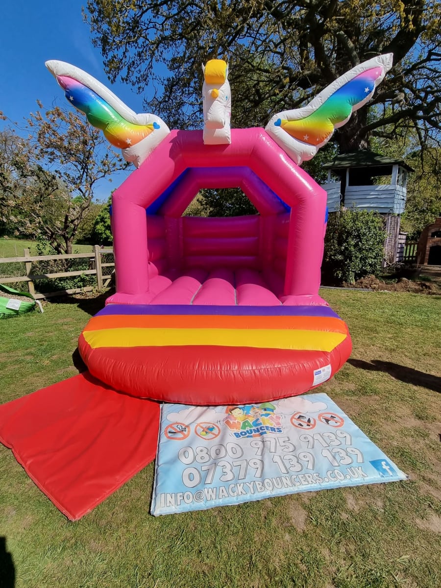 To book this Girly Pink Unicorn themed Bouncy Castle, just use the big green button below - you can even check its availability against our live diary! Our online booking system collects all the information we require and we will confirm your details via email and be in touch a few days before your booking to confirm all the details including your delivery time slot and for the final payment. Or, if you have any questions about this or any other bouncy castle, or any other services we offer, call us now on 07379 139 139