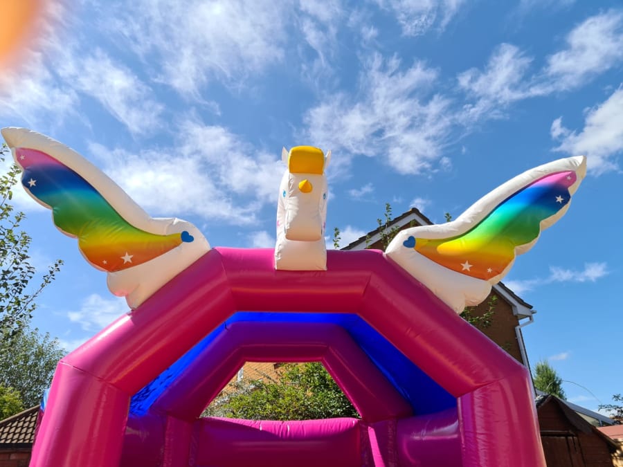 Your Pink Unicorn Bouncy Castle will be collected from the time you have requested on your booking form, up to approximately 9pm and sometimes later during busier periods. The Castle must be inflated for our arrival to be checked and swept clean. If you can please make sure any debris are removed from the castle before our arrival this will help speed up the collection process. Please follow the rules in our T & C such as no confetti, party poppers etc on the castle. If this rule has been ignored it is your responsibility to remove it before our arrival or cleaning charges will incur.