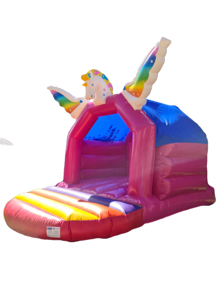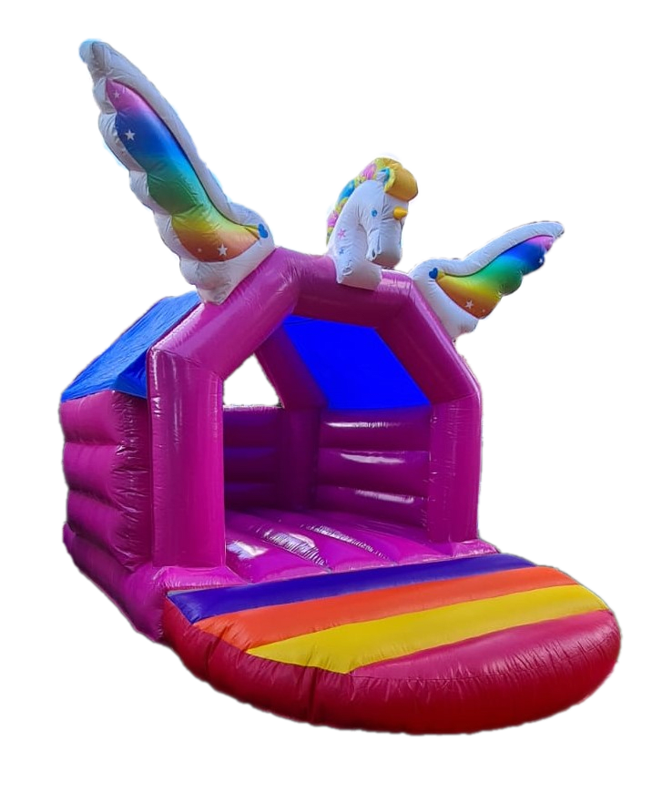 This unique pink Unicorn themed Bouncy Castle is an absolute must at any little girls or unicorn lovers Birthday Party. Unicorns have become very popular in the last few years and they are definitely here to stay. This Unicorn Bouncy Castle is a stunning vibrant colourful unit with an amazing Unicorn that pops out from the top and will be sure to have all of your guests impressed and entertained.