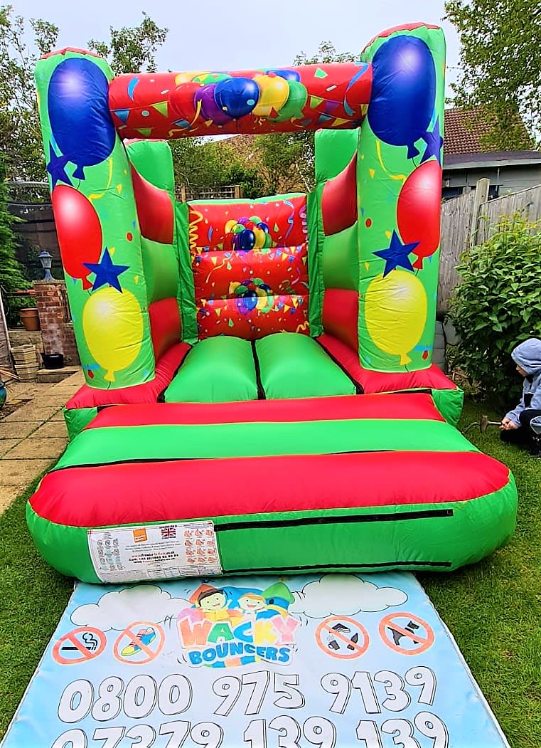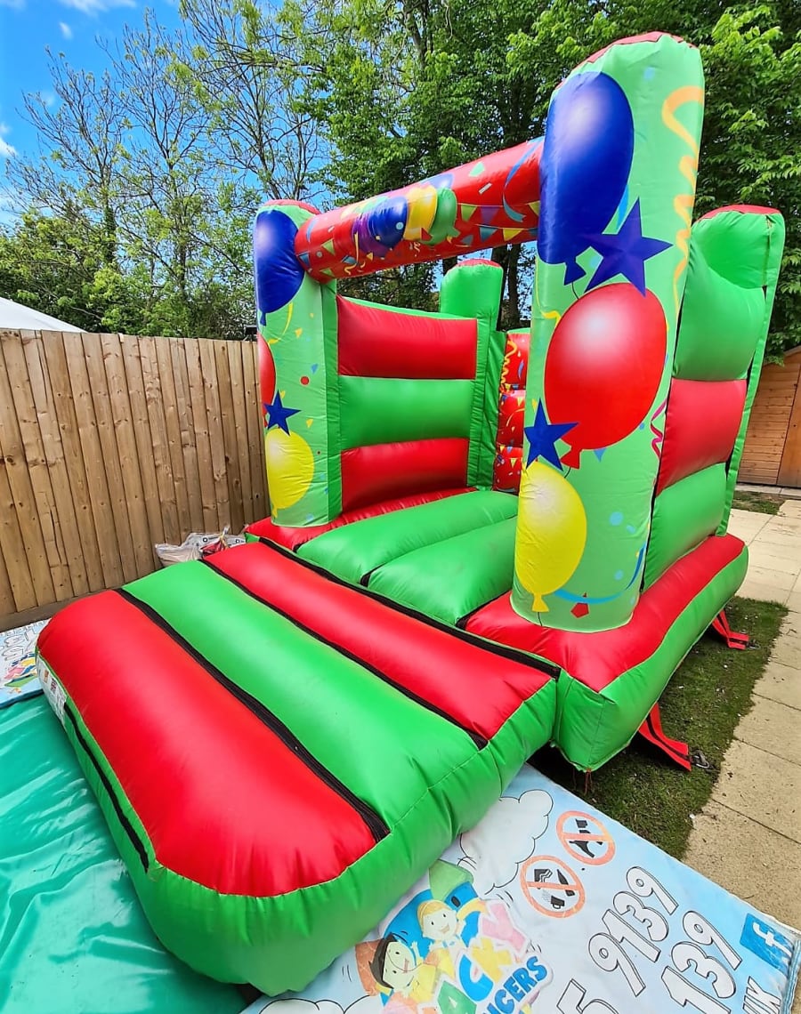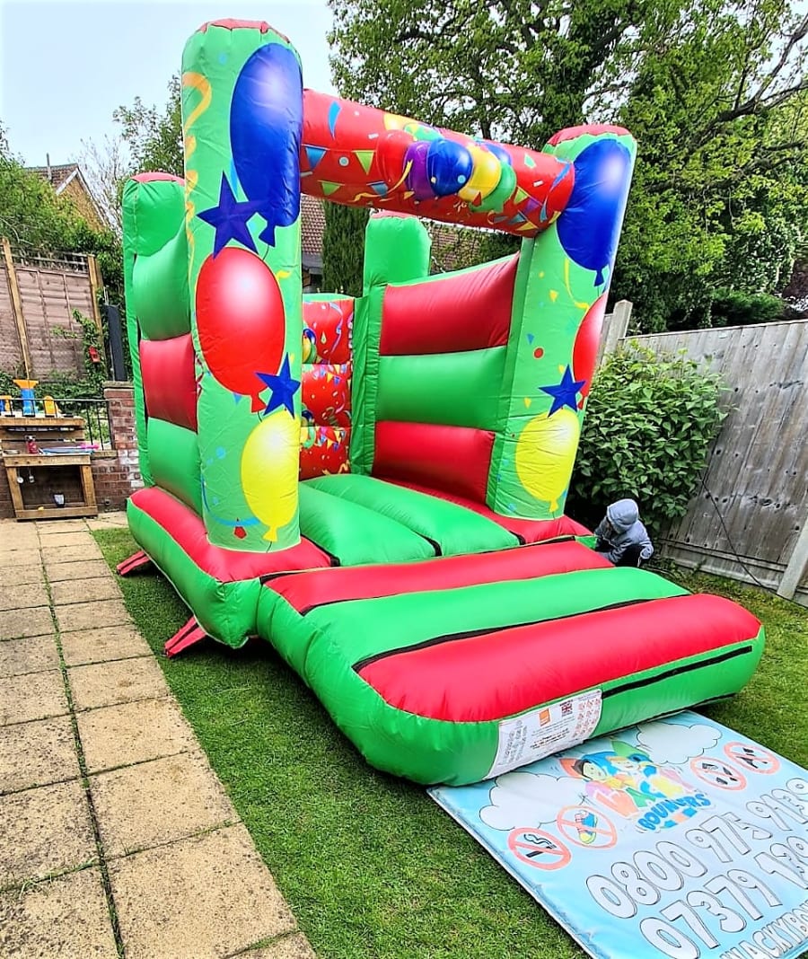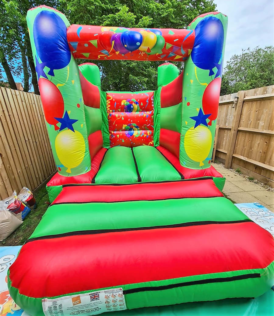 This Balloon/Party Themed Bouncy Castle is ideal for smaller venues and gardens. This castle is particularly popular as it is a neutral theme and its suitable for both boys and girls. It is also very popular with younger children and indoor venues as its not as big in height as a standard castle. There is no rain cover on this unit.