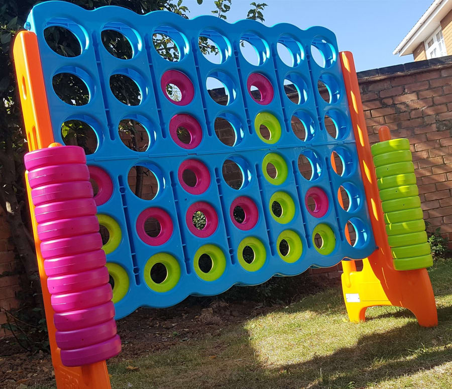 From Hasbro. The board measures 1.1m x 1.1m. A classic educational game of strategy where you have to connect 4 counters in a row to win. Perfect for parties. Popular at any event/celebration. A great add on when hired with other products ie Bouncy castle etc.
