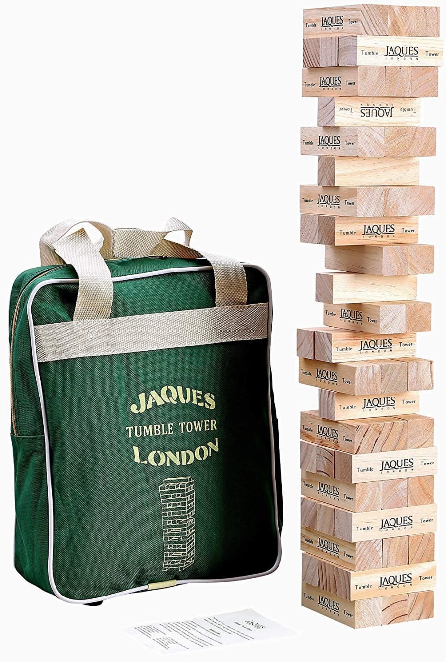 This game is a giant version of the original Jenga game. The aim of the game is to stack the blocks in sets of three until you have built a tower that is 18 blocks high. The first player to knock the tower over is out.