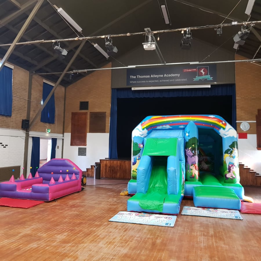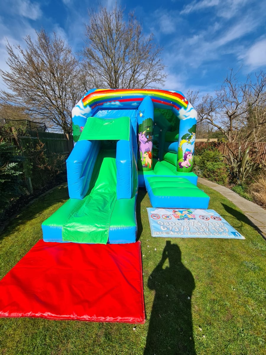 This is a great package to keep the kids entertained. You can Bounce, Jump and Slide (*Disco) in this amazing castle. This bouncy castle Is just perfect for unicorn lovers and great for princess theme parties too.. Comes with fitted shower cover and can become a disco for an additional £25.00. Please advise us when booking on our site in the additional notes section.