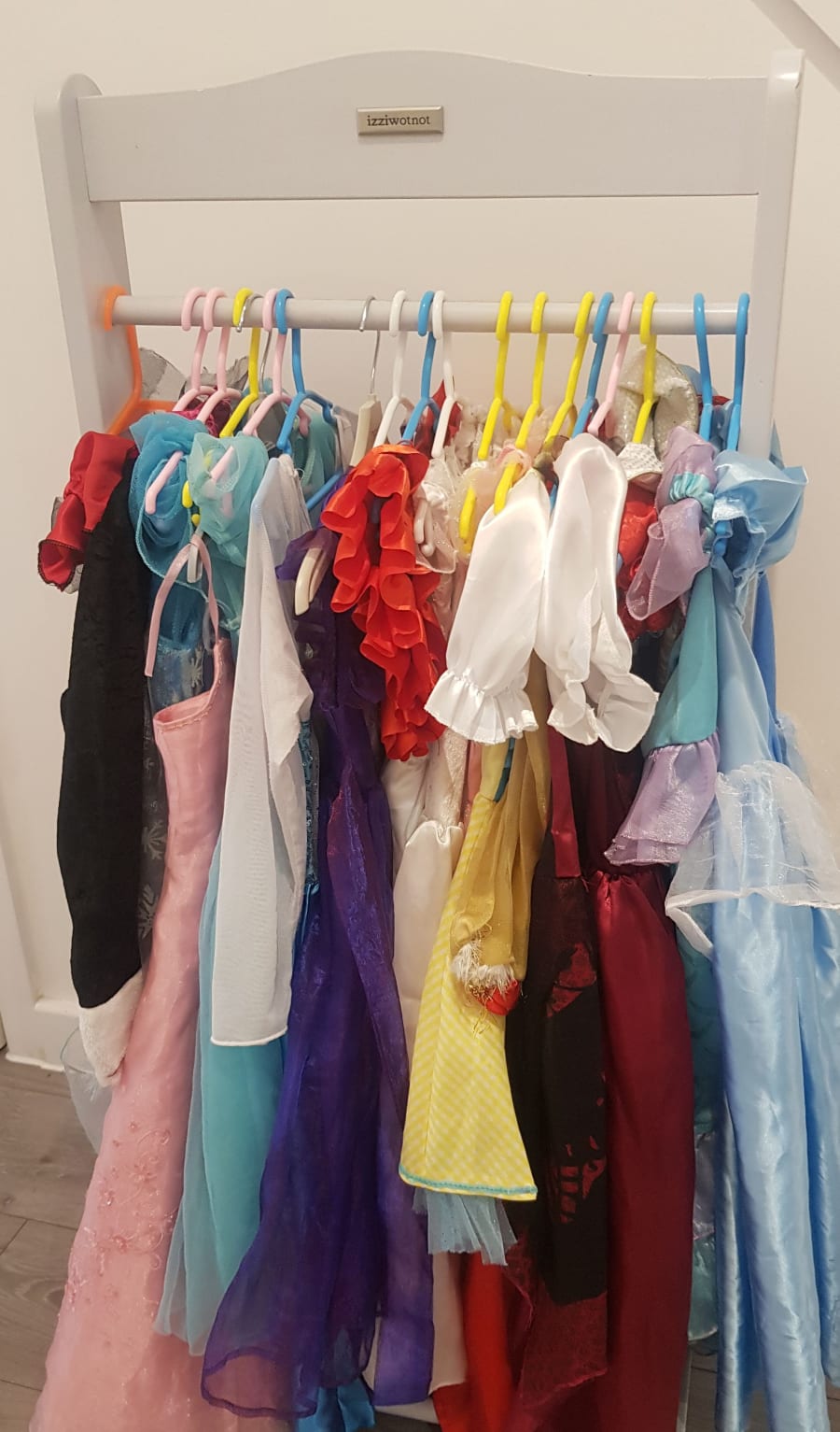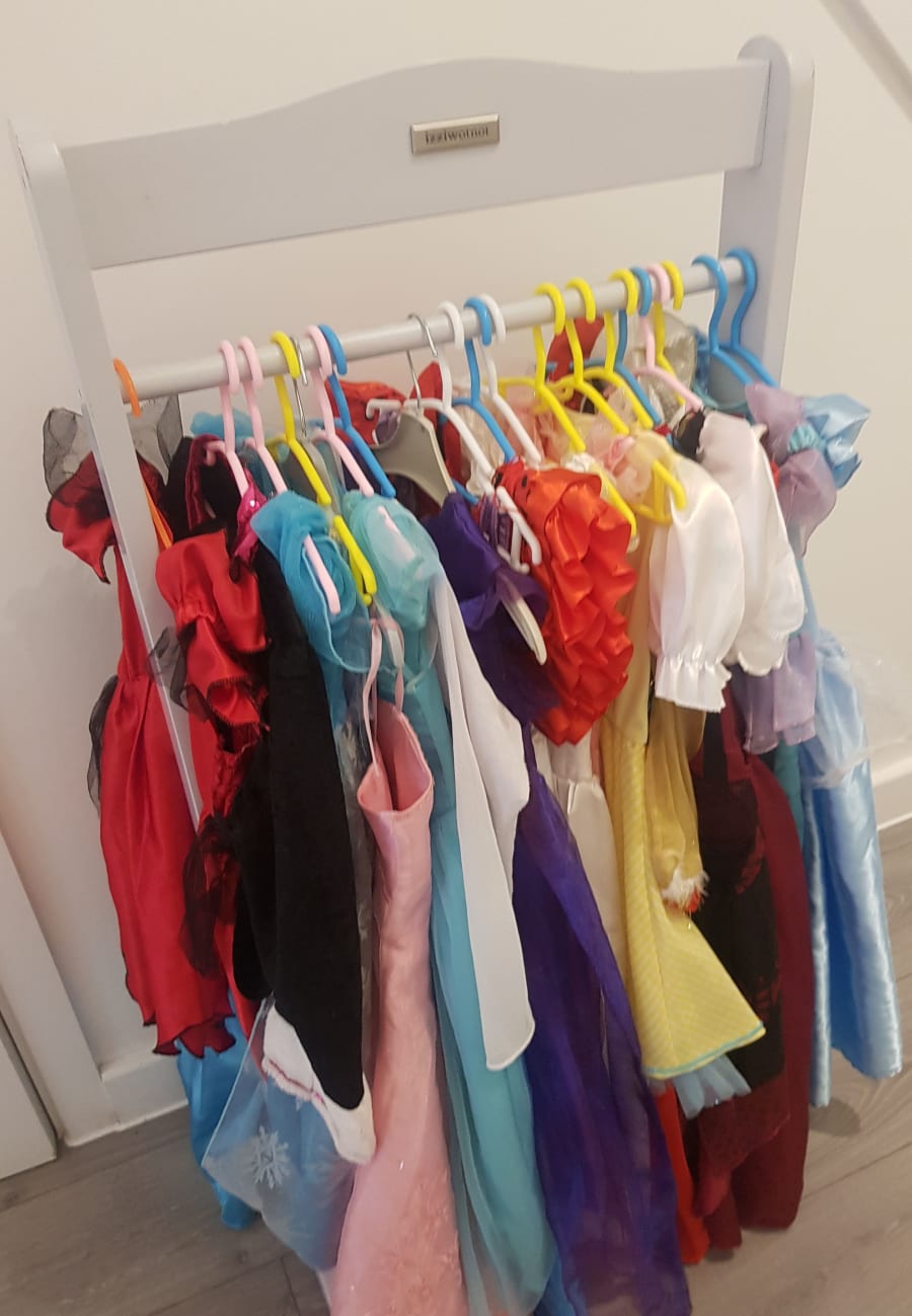 There are a great range of Princess costumes from all the great Disney films including, Frozen, Snow White and The Seven Dwarfs and many more. The costumes come on a lovely clothes rail so it's easy on the eye and organised, we also have a great range of superheroes costumes, fireman, policeman and many more so there is lots of choice. The Dressing Up Rail also comes with masks and accessories